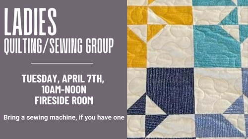 Ladies, join us in the WFA cafe area on Tuesday, April 7th from 10-noon. We will continue working on a comfort quilt for one of our members and begin another for Sleep in Heavenly Peace. Please bring a sewing machine if you have one. No experience necessary!
