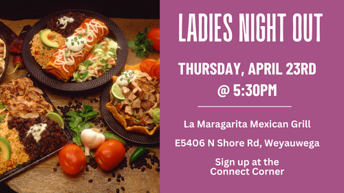 Don’t miss this evening at La Margarita Mexican Grill, E5406 N Shore Rd, Weyauwega! Bring your friends and enjoy a great evening of food and relaxation. We can’t wait to see you there! Sign up at the Connect Corner.