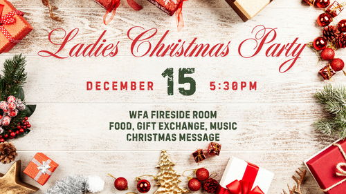 Experience a festive evening at our Ladies Night Out Christmas Party, complete with music, a Christmas message, good food, and warm fellowship in the Fireside Room. If you’d like to participate in the gift exchange, simply bring a fun new pair of socks.